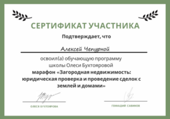 Добрый день. Я основатель и руководитель юридической компании в сфере загородной недвижимости "Регистратор-Дом" - Чепурной Алексей Валентинович.